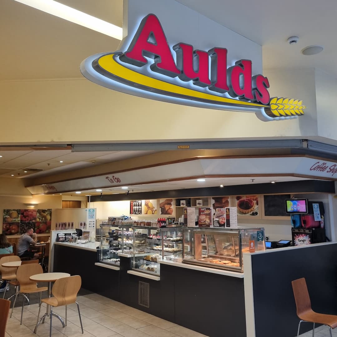 Aulds, a long-standing family bakery established in 1900, is known for its handmade cakes, pastries, and traditional favourites. Their latest store in the heart of Glasgow continues this tradition, offering a modern retail environment while retaining the familiar charm of the brand.